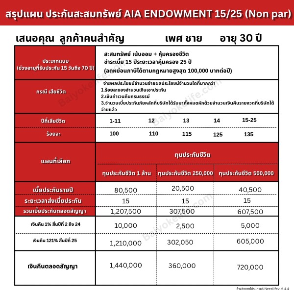 แผนประกันสะสมทรัพย์ AIA ENDOWMENT 15/25 ( Non par)