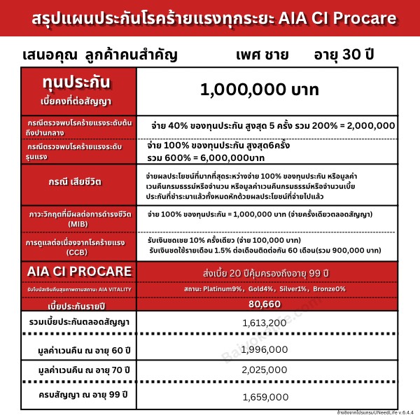 แผนประกันโรคร้ายแรงทุกระยะ AIA CI Procare