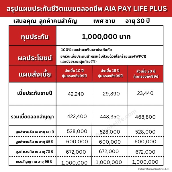 แผนประกันชีวิตแบบตลอดชีพ AIA PAY LIFE PLUS